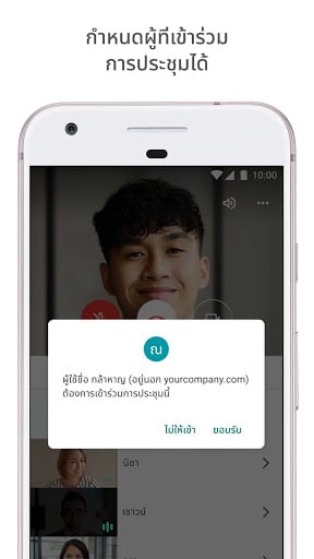 • เข้าถึงได้ง่ายจากอุปกรณ์ทุกเครื่อง – แชร์ลิงก์และเชิญสมาชิกทีมให้เข้าร่วมการสนทนาได้ด้วยเพียงคลิกเดียวจากเว็บเบราว์เซอร์หรือแอป Google Meet บนอุปกรณ์เคลื่อนที่